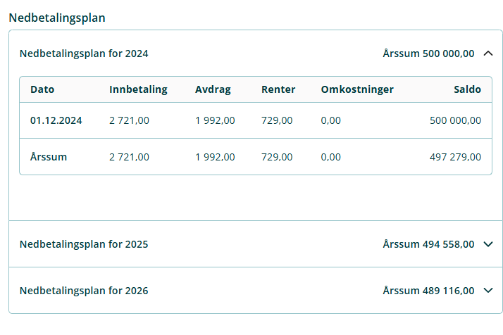 - Trenger du PDF av nedbetalingsplanen kan du benytte utskriftsfunksjonen i nettleseren din