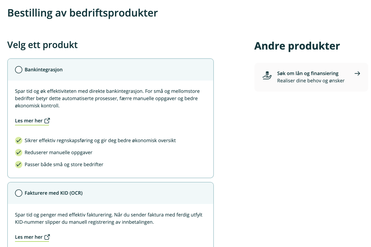 Bestille produkter direkte i nettbanken